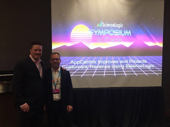 This picture was taken in the “Arcade” at the symposium. On the left is Scott Frymire from ScienceLogic and on the right is Nick Truran from AgileIT.